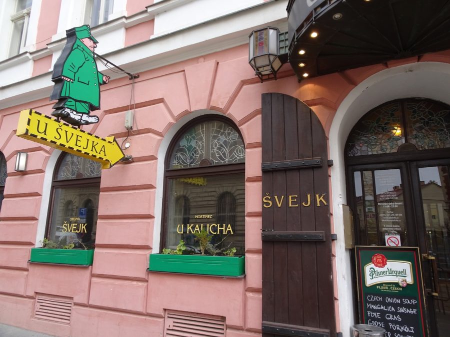 ここにはチェコの国民から愛される兵士シュヴェイクをテーマにしたパブ、ホスティネツ・ウ・カリハ(Hostinec U Kalicha)があります。作者ハシェクが足繁く通い、『シュヴェイク』の作中にも登場するお店です。