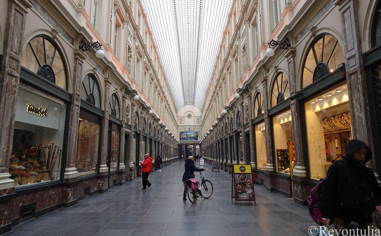 ブリュッセル屈指の観光スポット、ギャルリー・サンテュベール(Galeries Royales Saint Hubert)もこの有様。普段は人でごった返しているそうですが、この通りガラガラです。お店も半分以上は閉まっていました。