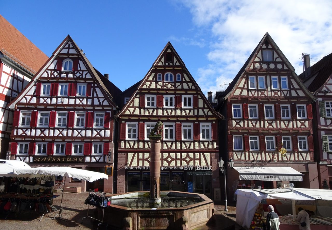 ここはヘルマン・ヘッセ広場(Hermann-Hesse-Platz)という名前の広場。木組みの家々が可愛らしい。ここにはカフェやホテルなんかもあります。