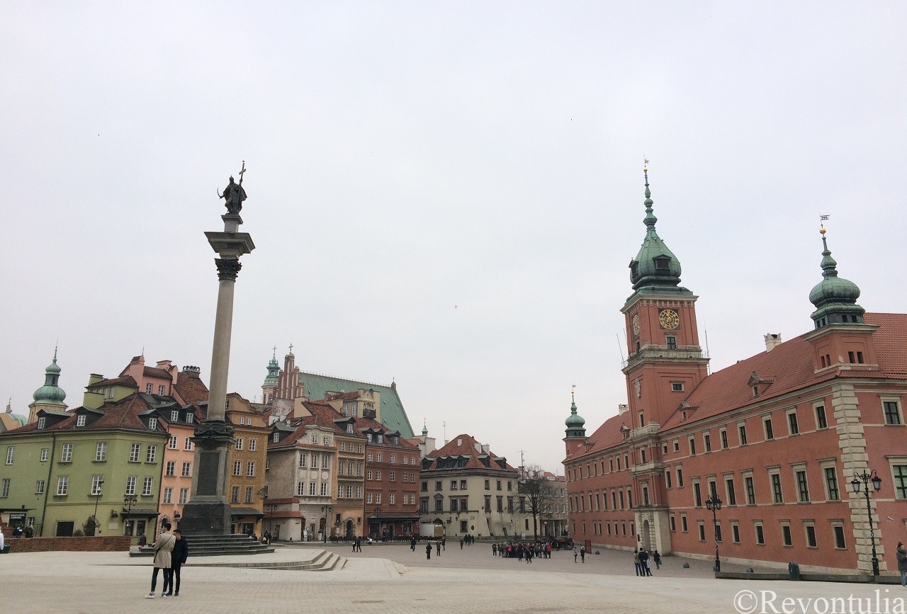 大統領の宮殿なり国家遺産省なりがある通りをまっすぐ進むと、王宮広場に出ました。おそらくワルシャワで一番有名な場所ですね。